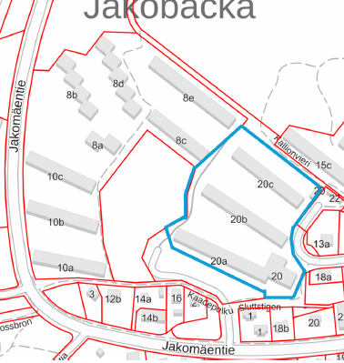 Kuvassa alla kohteen sijainti rajattu sinisellä viivalla kiinteistökartalla.